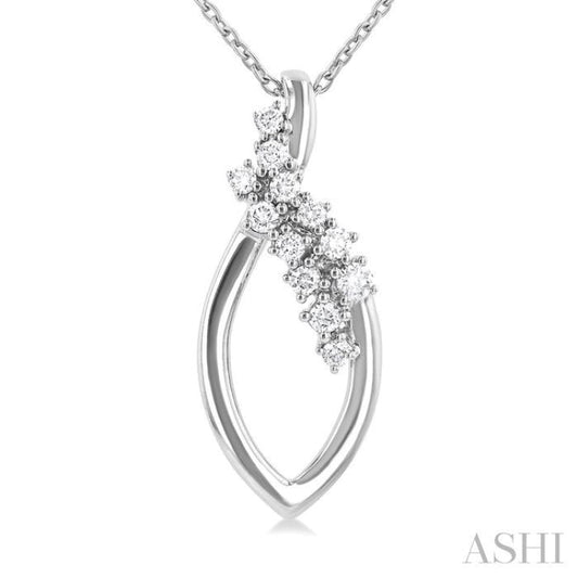 1/5 Ctw Marquise Shape Scattered Round Cut Diamond Fashion Pendant With Chain in 10K White Gold