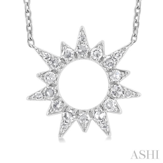1/5 ctw Sunburst Round Cut Diamond Fashion Pendant With Chain in 10K White Gold