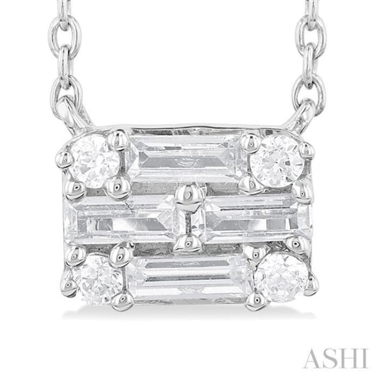 1/4 ctw Fusion Baguette and Round Cut Diamond Pendant With Chain in 14K White Gold