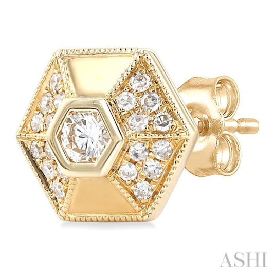 3/8 ctw Hexagon Shape Single Cut Diamond Fashion Stud Earrings in 14K Yellow Gold