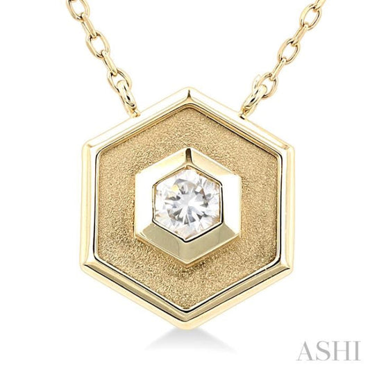 1/5 ctw Petite Double Hexagon Round Cut Diamond Fashion Necklace in 14K Yellow Gold
