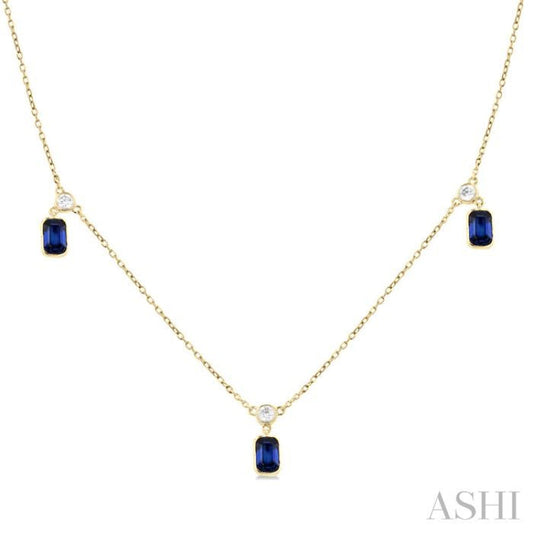 1/4 ctw Round Cut Diamonds and 5X3MM Octagonal Shape Sapphire Precious Station Necklace in 14K Yellow Gold