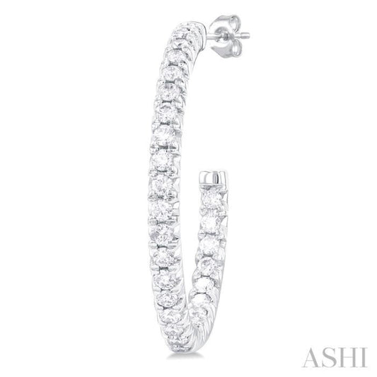 3/4 Ctw French Pave Set Round Cut Diamond Fashion Half Hoop Earring in 14K White Gold