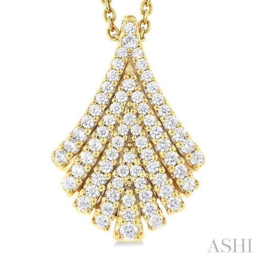 1/3 ctw Fan Round Cut Diamond Fashion Pendant With Chain in 14K Yellow Gold