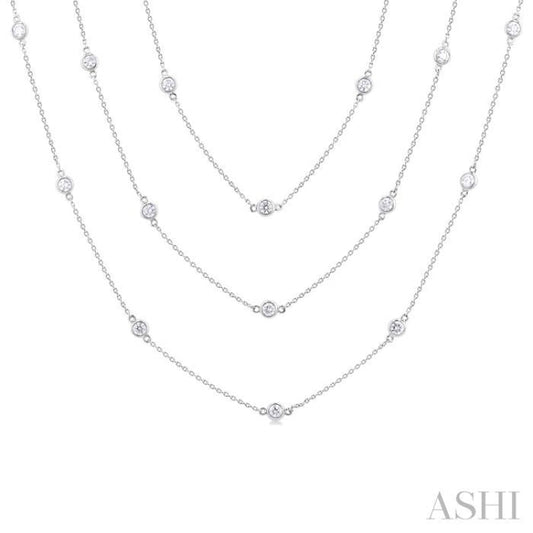 3 ctw Bezel Set Round Cut Diamond Long Station Necklace in 14K White Gold
