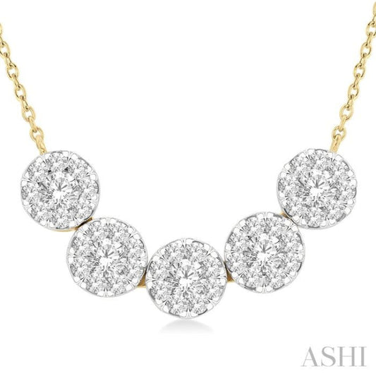 3/4 Ctw 5-Stone Circular Mount Lovebright Round Cut Diamond Necklace in 14K Yellow & White Gold