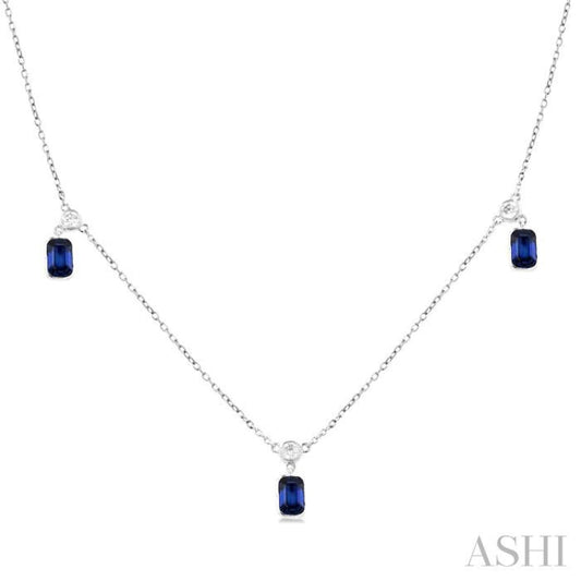 1/4 ctw Round Cut Diamonds and 5X3MM Octagonal Shape Sapphire Precious Station Necklace in 14K White Gold