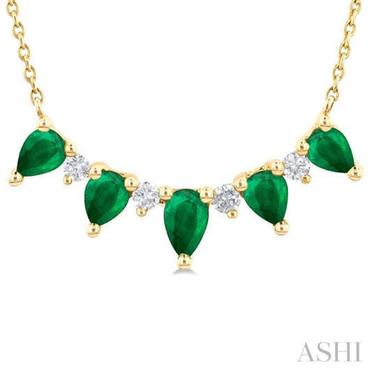 1/8 ctw Pear Cut 5X3 and 4X3MM Precious Emerald & Round Cut Diamond Necklace in 14K Yellow Gold