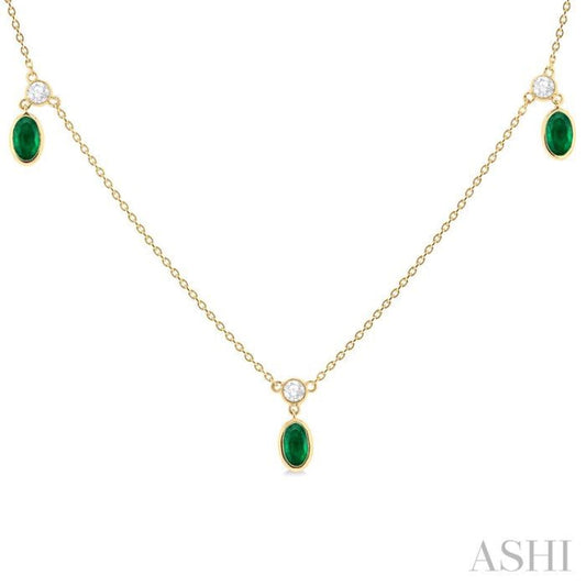 Vendor:Ashi1/4 ctw Round Cut Diamonds and 5X3MM Oval Shape Emerald Precious Station Necklace in 14K Yellow Gold