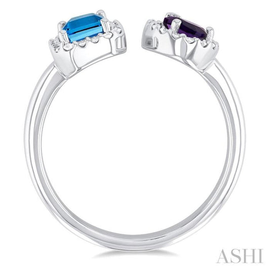 1/5 ctw Open Toi Et Moi 6X4 MM Emerald Cut Blue Topaz and Pear Cut Amethyst & Round Cut Diamond Halo Fashion Ring in 14K White Gold