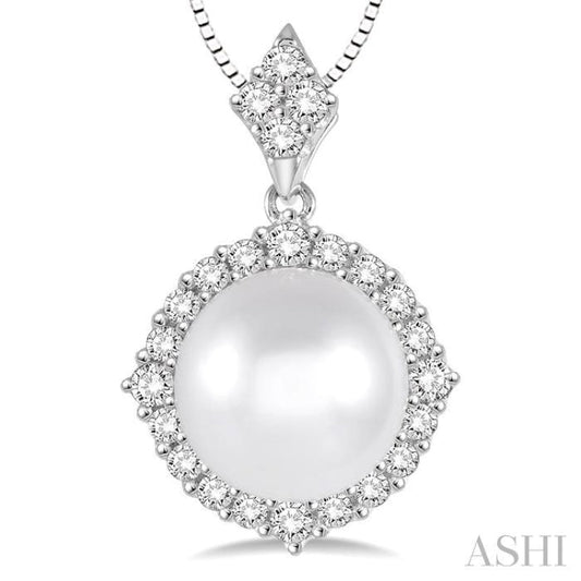10x10MM Cultured Pearl and 1/2 Ctw Round Cut Diamond Pendant in 14K White Gold with chain
