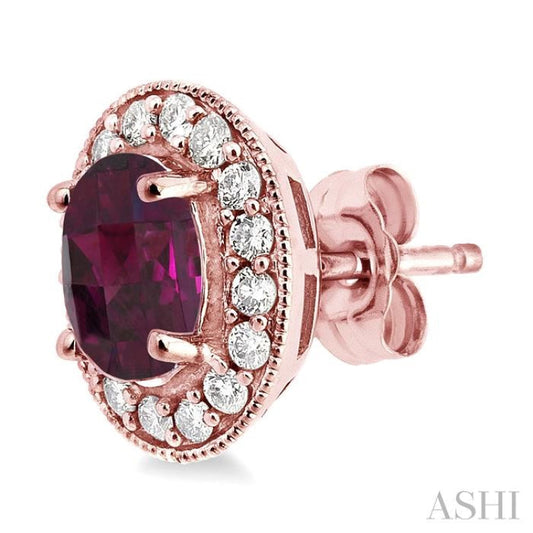 7x5 MM Oval Cut Rhodolite Garnet and 3/8 Ctw Round Cut Diamond Earrings in 14K Rose Gold