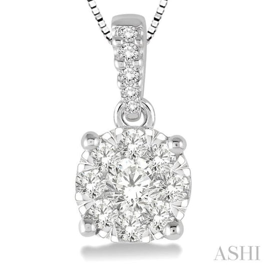 3/4 Ctw Round Shape Diamond Lovebright Pendant in 14K White Gold with Chain