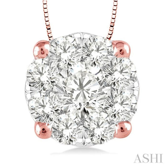 1/3 Ctw Lovebright Round Cut Diamond Pendant in 14K Rose and White Gold with Chain