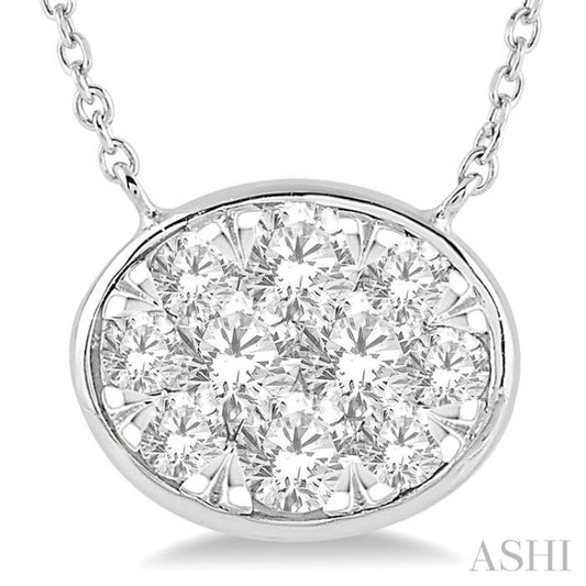 3/4 Ctw Oval Shape Lovebright Diamond Necklace in 14K White Gold
