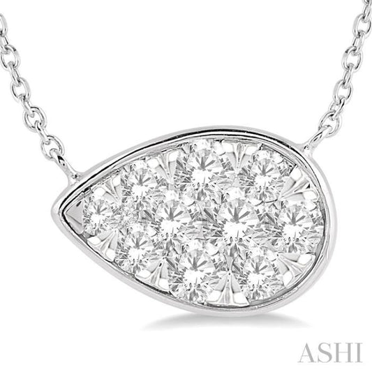 3/4 Ctw Pear Shape Lovebright Diamond Necklace in 14K White Gold