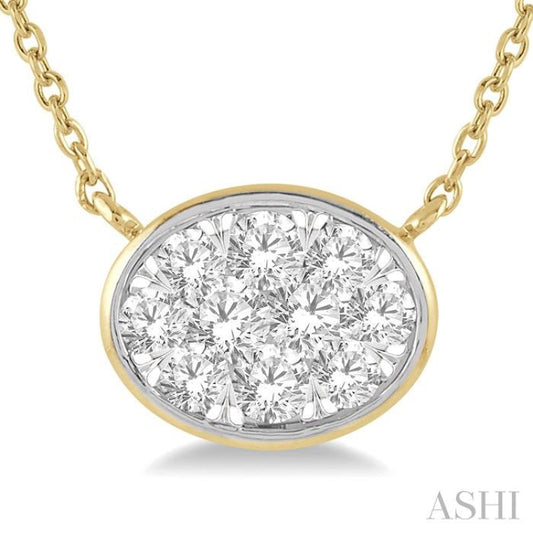 1/3 Ctw Oval Shape Lovebright Diamond Necklace in 14K Yellow and White Gold