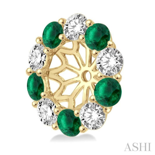 2.65 MM Round Cut Emerald and 3/4 Ctw Round Cut Diamond Earring Jacket in 14K Yellow Gold