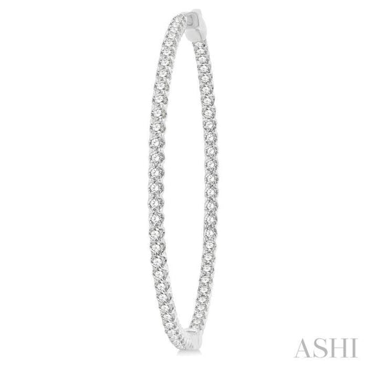 3 Ctw Inside-Out Round Cut Diamond 1 3/4 Inch Hoop Earrings in 14K White Gold