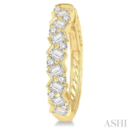 1 Ctw Zigzag Baguette and Round Cut Diamond Hoop Earring in 14K Yellow Gold
