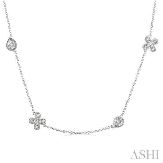 5/8 ctw Floral and Pear Shape Round Cut Diamond Station Necklace in 14K White Gold