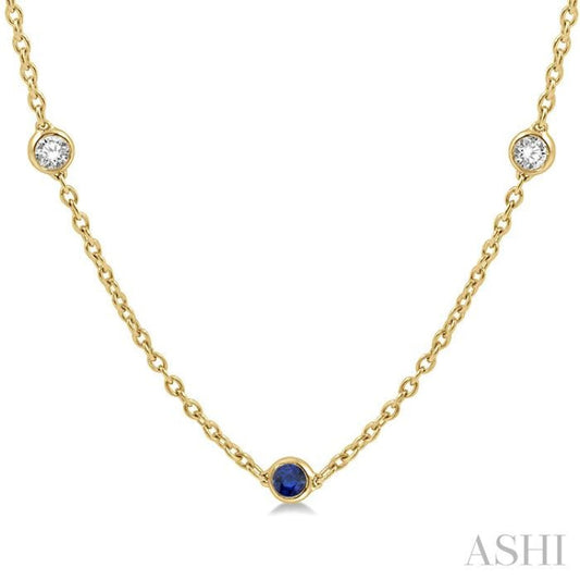 1/2 ctw Round Cut Diamond and 2.85MM Sapphire Precious Station Necklace in 14K Yellow Gold