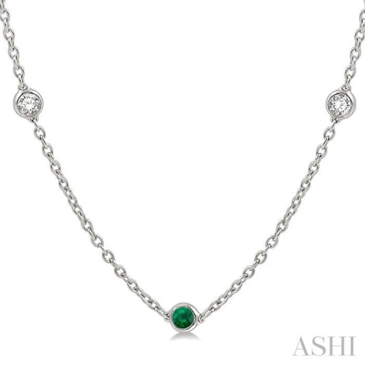 3/8 ctw Round Cut Diamond and 2.6MM Emerald Precious Station Necklace in 14K White Gold
