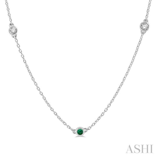 1/2 ctw Round Cut Diamond and 2.85MM Emerald Precious Station Necklace in 14K White Gold