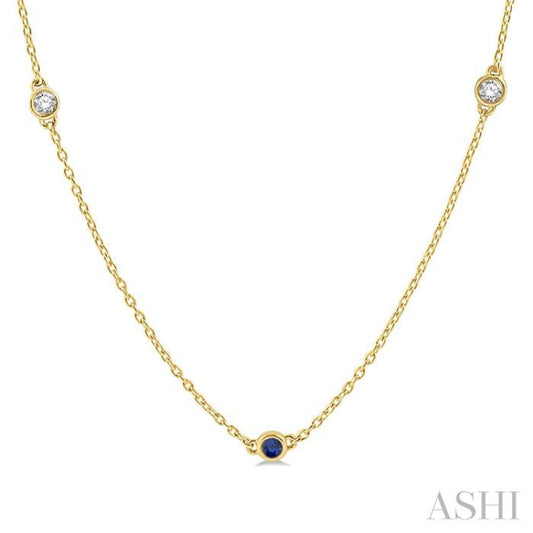 1/6 ctw Round Cut Diamond and 1.75MM Sapphire Precious Station Necklace in 14K Yellow Gold