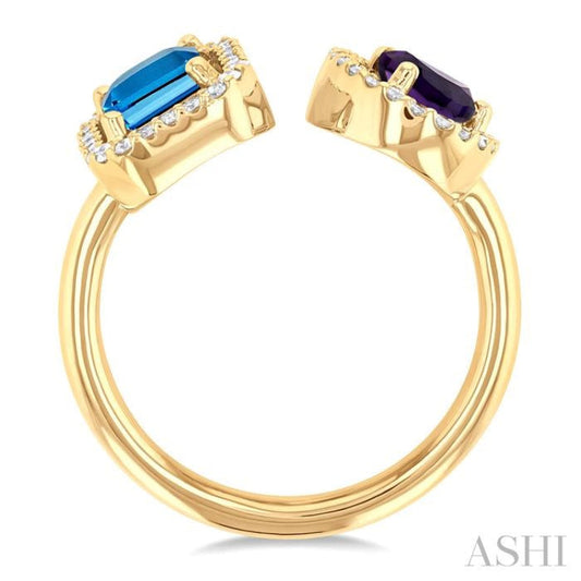 1/5 ctw Toi Et Moi 7X5 MM Emerald Cut Blue Topaz & Pear Cut Amethyst and Round Cut Diamond Halo Open Fashion Ring in 14K Yellow Gold