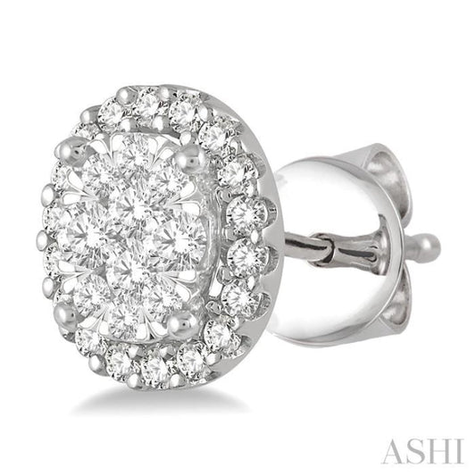 1/3 Ctw Oval Shape Lovebright Round Cut Diamond Stud Earrings in 14K White Gold