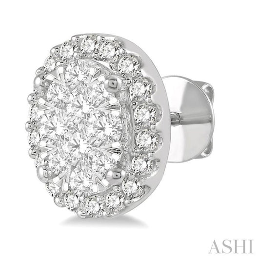 1/2 Ctw Oval Shape Lovebright Round Cut Diamond Stud Earrings in 14K White Gold