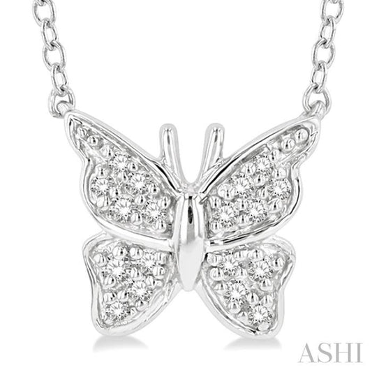 1/20 Ctw Butterfly Petite Round Cut Diamond Fashion Pendant With Chain In 10K White Gold