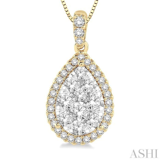 1/2 Ctw Pear Shape Diamond Lovebright Pendant in 14K Yellow and White Gold with Chain