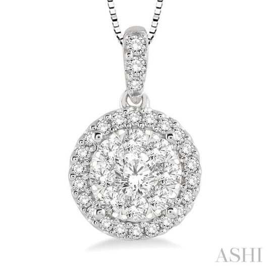 1/3 Ctw Round Cut Diamond Lovebright Pendant in 14K White Gold with Chain