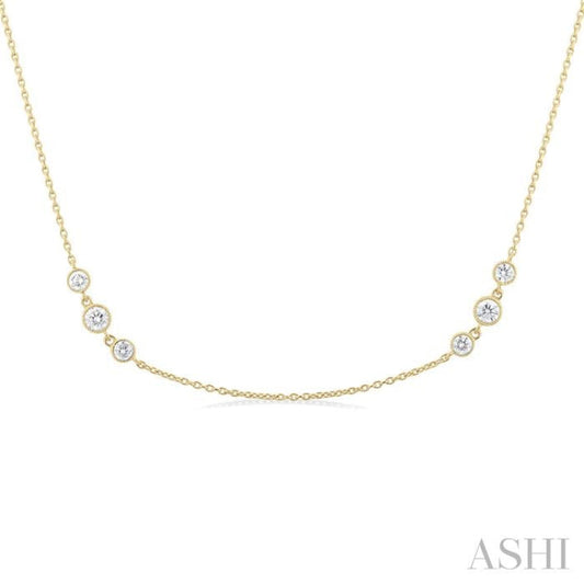 3/4 ctw Three Stone Bezel Set Round Cut Diamond Station Necklace in 14K Yellow Gold