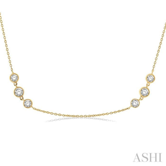 1 ctw Three Stone Bezel Set Round Cut Diamond Station Necklace in 14K Yellow Gold