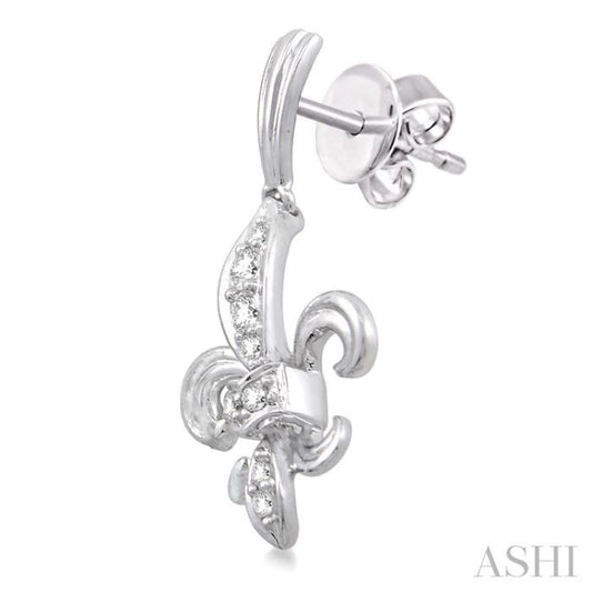1/4 Ctw Round Cut Diamond Fleur De Lis Earrings in 14K White Gold