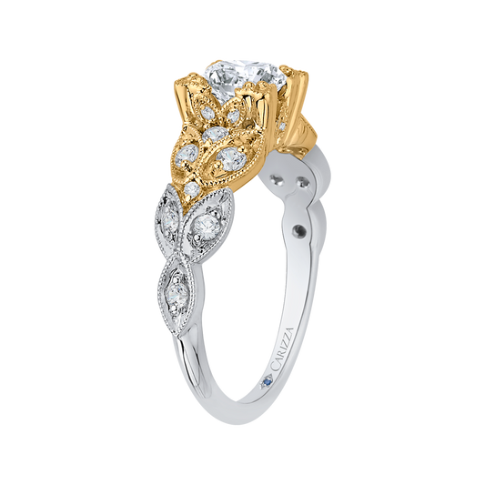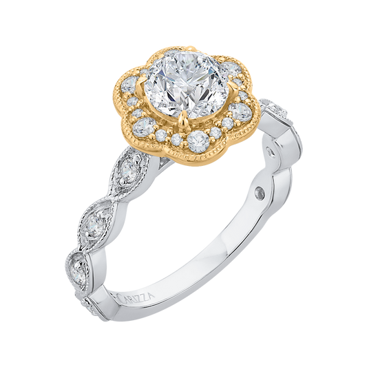 Round Diamond Floral Engagement Ring in 14K Two-Tone Gold (Semi-Mount)
