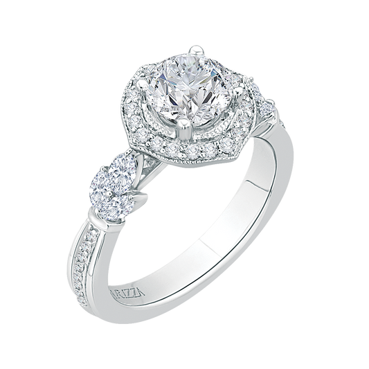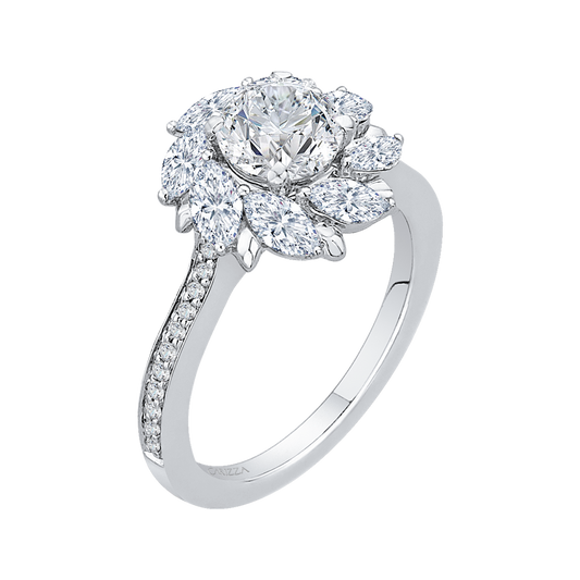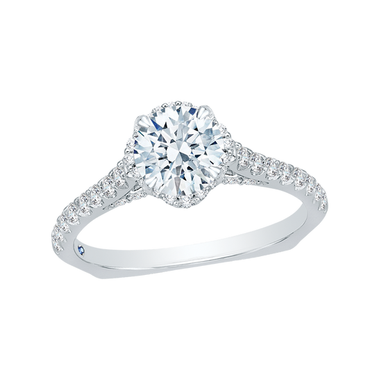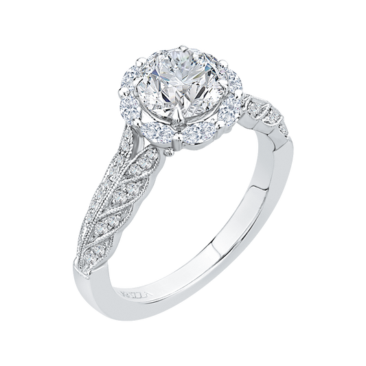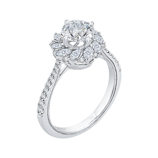Round Diamond Floral Halo Engagement Ring in 14K White Gold (Semi-Mount)