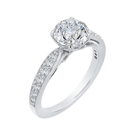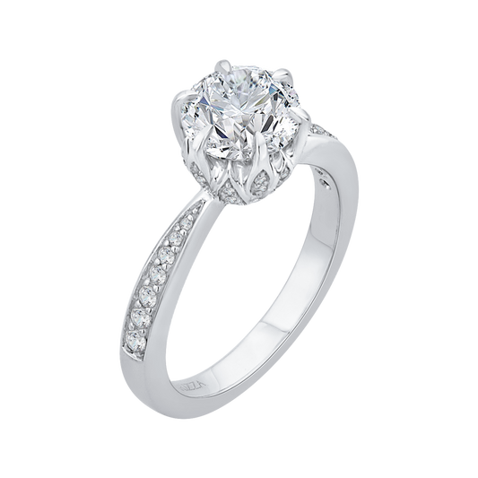 Round Diamond Floral Engagement Ring in 14K White Gold (Semi-Mount)