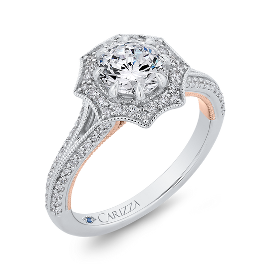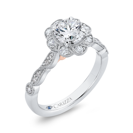 Round Diamond Floral Halo Engagement Ring in 14K Two Tone Gold (Semi-Mount)