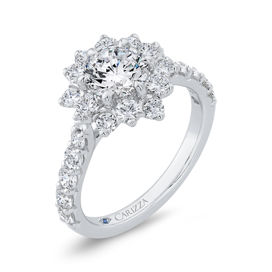 Round Diamond Floral Engagement Ring with Round Shank in 14K White Gold (Semi-Mount)
