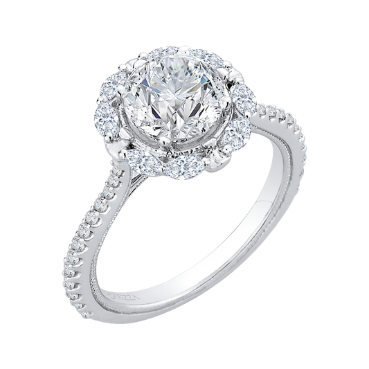 Round Diamond Halo Engagement Ring in 14K White Gold (Semi-Mount)