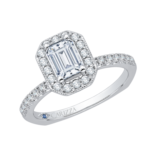 Emerald Cut Diamond Halo Engagement Ring in 14K White Gold (Semi-Mount)