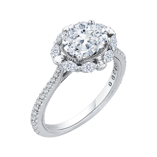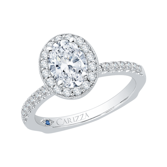 Oval Cut Diamond Halo Engagement Ring in 14K White Gold (Semi-Mount)