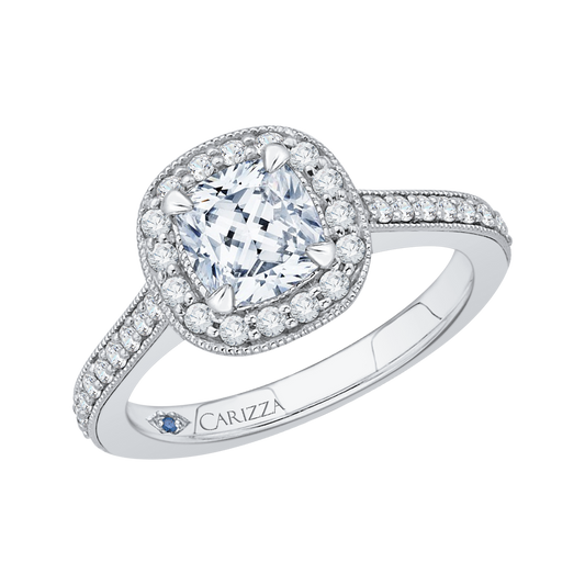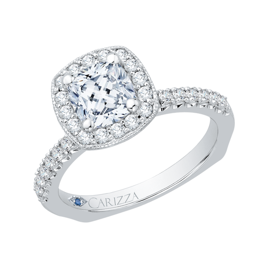 Cushion Cut Diamond Halo Engagement Ring in 14K White Gold (Semi-Mount)