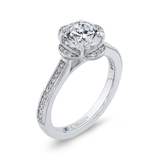 Split Shank Round Diamond Floral Halo Engagement Ring in 14K White Gold (Semi-Mount)