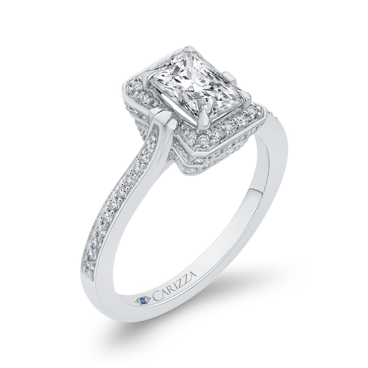 Emerald Cut Diamond Engagement Ring in 14K White Gold (Semi-Mount)
