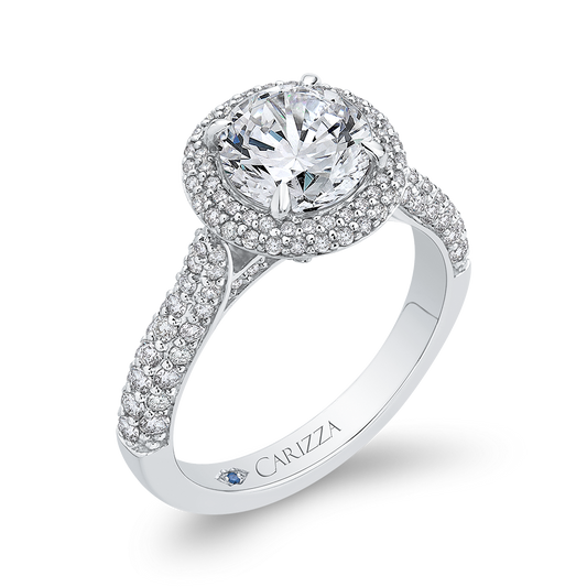 Round Diamond Double Halo Engagement Ring in 14K White Gold (Semi-Mount)